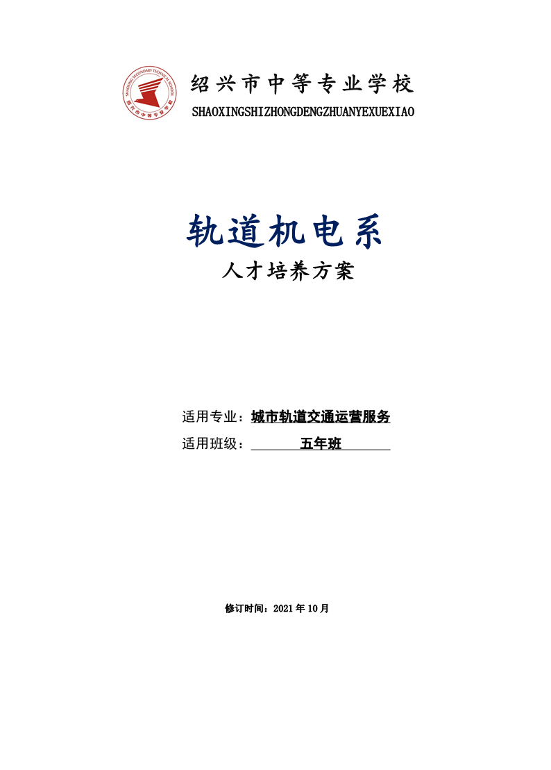 轨道机电系城市轨道交通运营服务专业人才培养方案