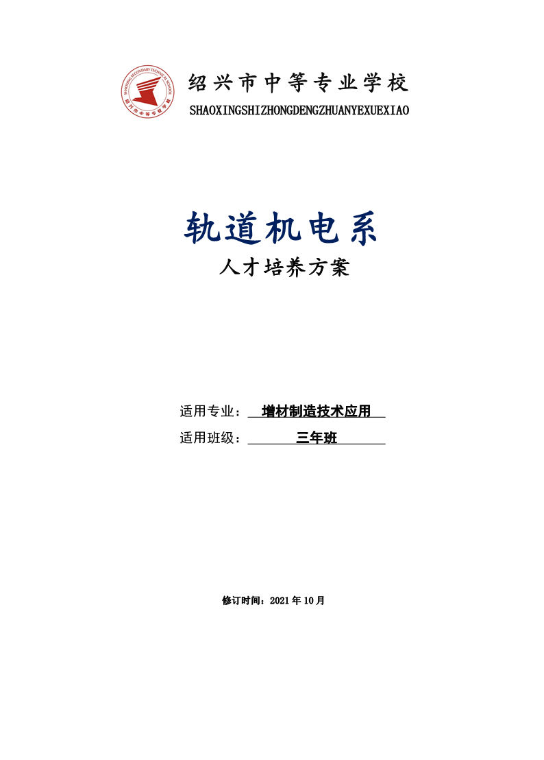 轨道机电系增材制造技术应用专业人才培养方案