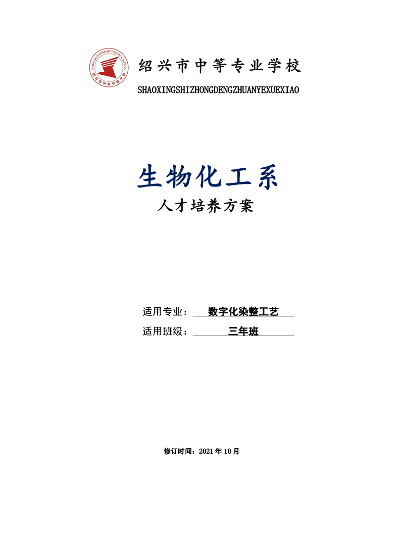 生物化工数字化染整工艺专业人才培养方案