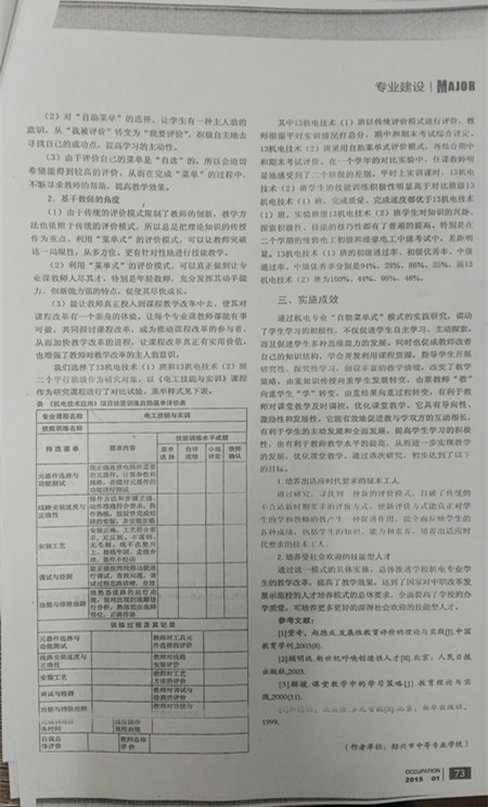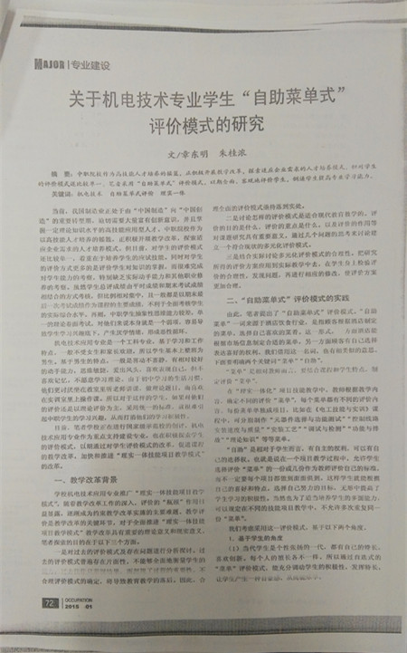 关于机电技术专业学生“自助菜单式”评价模式的研究