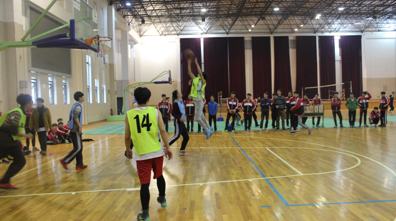 此次三人篮球赛每班由两名学生与一名任教老师组队,班级之间进行比拼。随着哨声的响起,比赛拉开了帷幕,球员们开始了激烈的抢球、断球、防守、进攻模式,他们情绪激昂,矫捷地穿梭在球场上。场外观看比赛的人们为球员加油助威,呐喊声让比赛不断升温。无论胜负如何,球员们都尽情地享受这场比赛,即使大汗淋漓,负伤上场也要全力以赴,场上那顽强拼博的精神感动了在场的每一位。