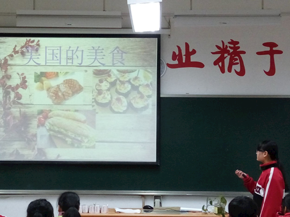 201611415物联班进行了期末PPT英语作业展示,里面包括了香格里拉等旅游胜地,每个小组都派一个人上来演讲。