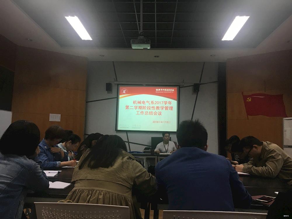 4 月 13 日下午,机械电气系在 522 会议室召开了阶段性教学管理工作总结会议,系主任杭建卫老师主持会议。