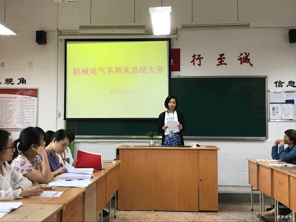 6月22日,机械电气系在516教室召开了2017学年第二学期期末总结大会,大会由系书记吴志燕主持。
