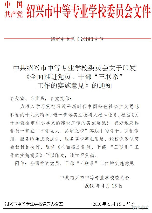 中共AG.COM委员会关于印发《全面推进党员、干部“三联系” 工作的实施意见》的通知