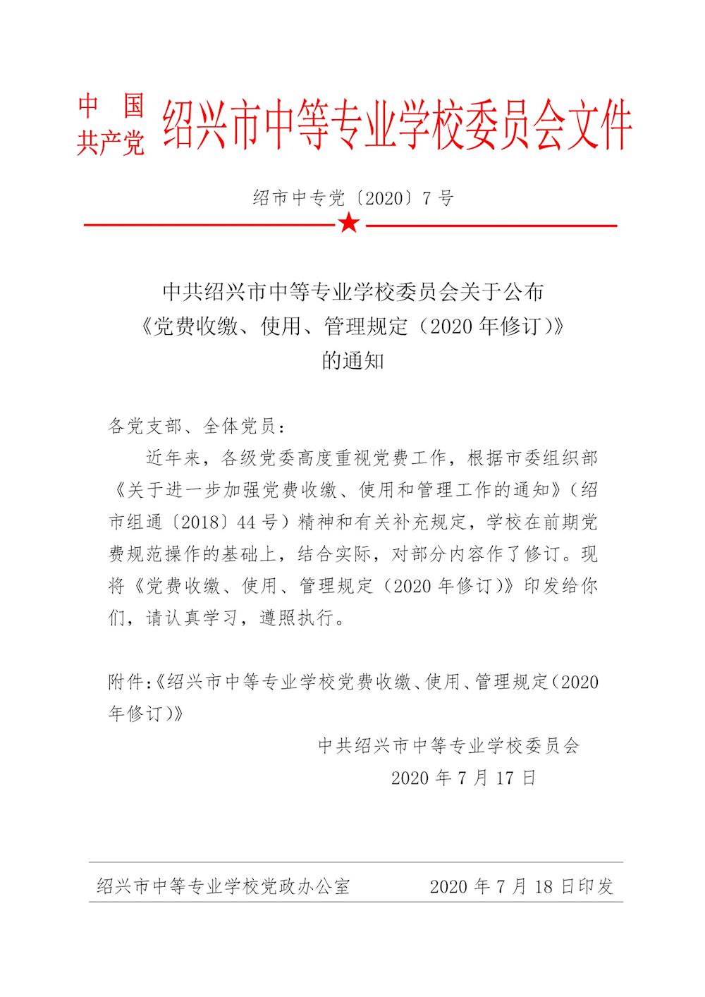 中共AG.COM委员会关于公布 《党费收缴、使用、管理规定(2020年修订)》 的通知