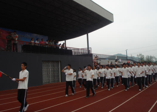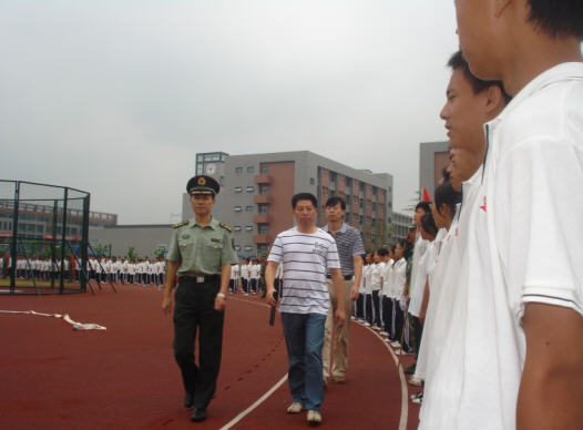 在嘹亮的口号声中,闭营仪式正式开始。首先,绍兴中专校长娄华水、书记王成相在部队首长的陪同下检阅了由26个列式方队。同学们排着整齐的队列,焕发着坚毅刚强的军人风采接受了检阅,显示了这次军训取得的显著成果。