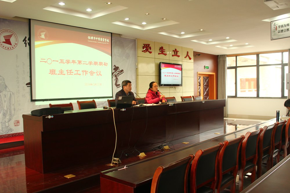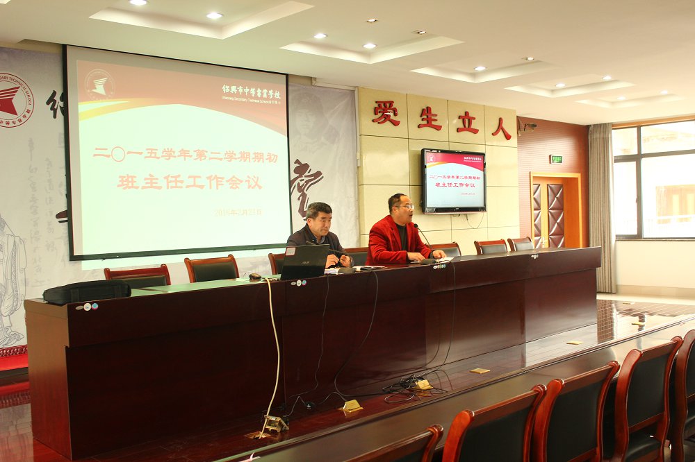 2月21日下午,绍兴中专召开2015学年第二学期期初全校班主任工作会议。会议由学生处处长屠小夫老师主持,各系部书记、全体班主任、三年内新教师参加了本次会议。