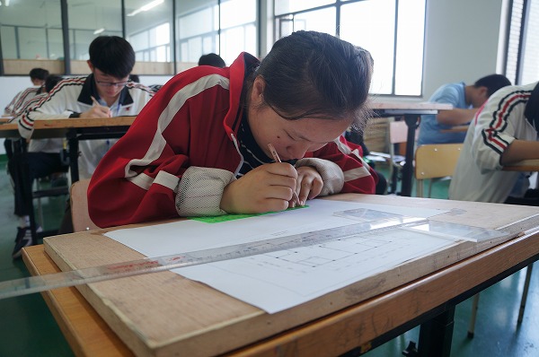 在竞赛日这天,中专学子共参加了包括手工扎染、料酒中的Nacl含量测定、企业经营沙盘、电气控制线路安装与调试、中药鉴定、建筑镶贴与抹灰、趣味数学比赛等专业技能和文化素养两大类共27个项目的比拼。比赛现场可谓热火朝天,精彩纷呈,参赛各路选手纷纷拿出自己的看家本领,力争在竞赛现场一展风采。你看,这里是参加建筑CAD项目比赛的同学们,他们正凝神屏息注视着电脑屏幕,精细地绘图与编辑着一张张布图均匀清晰的建筑工程图;那里是参加转移印花的同学们,在他们的巧手腾挪下,一幅幅色彩鲜艳,层次鲜明的印花作品便栩栩如生地呈现在了织物之上,让人看了爱不释手;还有那参加中华经典诗词朗诵比赛的同学们,正在报告厅的舞台上精心演绎着那一首首荡气回肠、脍炙人口的经典诗词,和台下观众一起徜徉于美轮美奂的诗歌殿堂之中……高水平的比拼引得那些前来参观的同学们啧啧称赞,他们为同窗拥有的精湛技艺而频频叫好。正所谓台上一分钟,台下十年功,凭借着平时的刻苦训练和努力学习,中专学子在赛场上展现出了最优秀的一面,这一场一场的出类拔萃的技能比拼,迸发出来的是中专学子打磨技能,学好文化,提升素养的激情,也正好诠释了本届技能文化节“文化点燃青春梦想,技能引领未来人生”的主旨。
