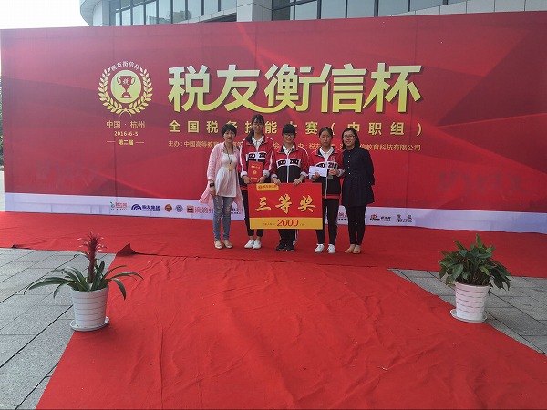 6月5日,在杭州举行了 “税友衡信杯”全国税务技能大赛总决赛。财贸系学生董黄萍、胡安琪和徐昕翊在指导老师张晶晶的带领下,勇夺中职组三等奖。