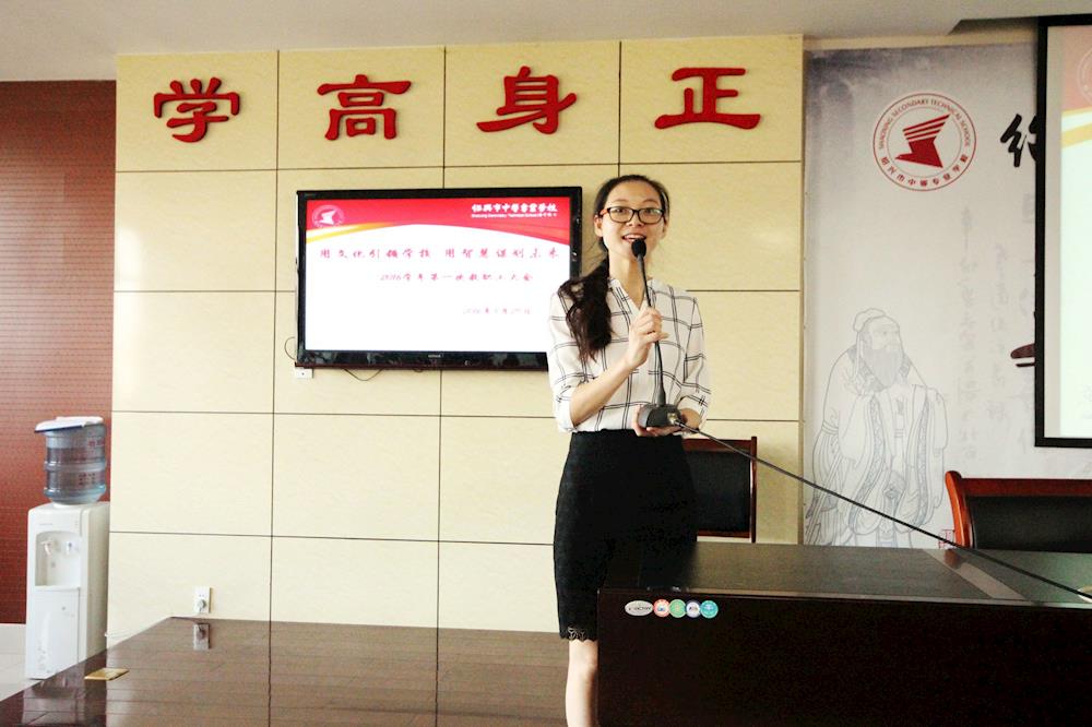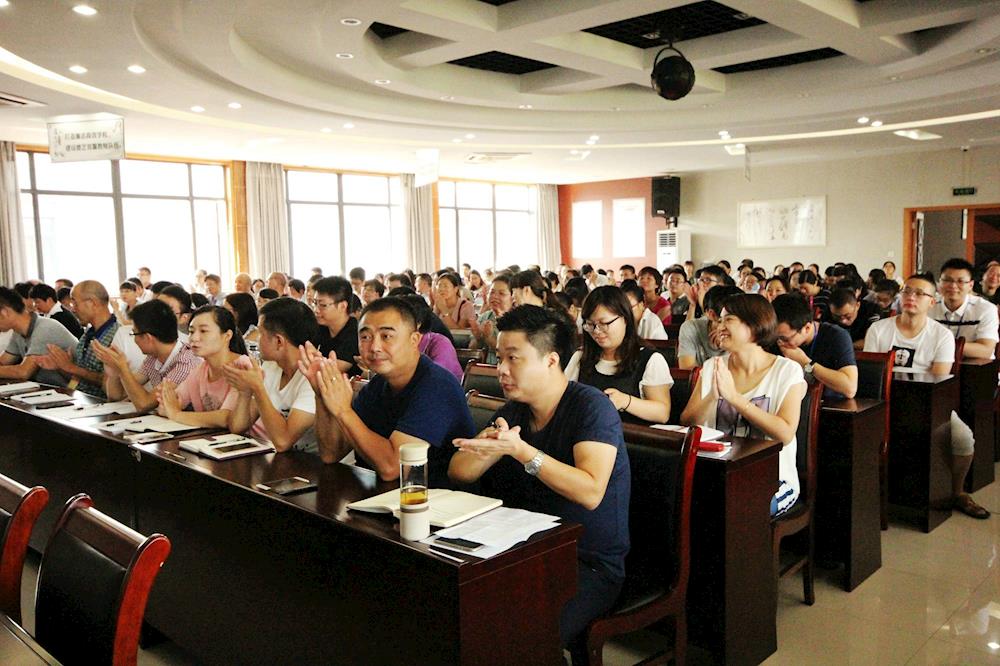 会议首先由王慧莉书记总结了学校教师暑期参加“平安志愿者”活动所取得的成绩。她强调新学期伊始,教职工要调整好自己的状态,关注教师形象,注意仪容仪表,以崭新的姿态和饱满的精神迎接学生的到来。紧接着,她部署了接下来几天的工作任务,并要求各部门和广大教职工要认真准备,严格落实,打好开学第一仗。之后,举行了新教师见面会, 2016年入职的9位新教师一一上台作了自我介绍,主席台上洋溢着青春的气息。王书记欢迎他们加入绍兴中专这个大家庭,她希望新教师们能勇于迎接挑战,做一个有理想有追求的教师,做一个脚踏实地的教师,做一个真心热爱教育、真心关爱学生的教师。
