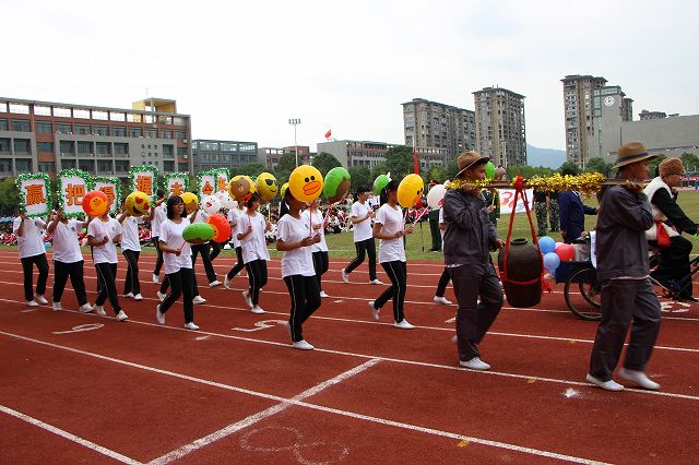 开幕式在欢快的运动员进行曲中拉开了帷幕。学校护旗队首先步入会场,护旗手高举国旗和本届运动会会旗,迈着正步、精神抖擞地经过主席台。紧接着,全校五个系共76个班级方阵和每个系的教职工方阵也身着统一的服装,迈着整齐的步伐,喊着响亮的口号步入会场,依次经过主席台,接受领导检阅。
