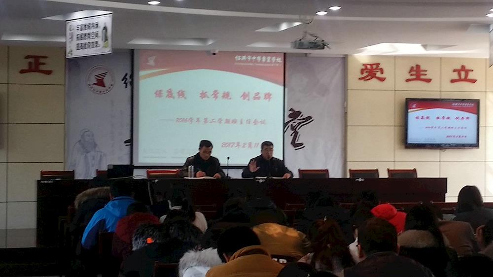 2月11日下午,绍兴中专召开2016学年第二学期期初全校班主任工作会议。会议由学生处处长屠小夫老师主持, 各系部书记、全体班主任、三年内新教师参加了本次会议。
