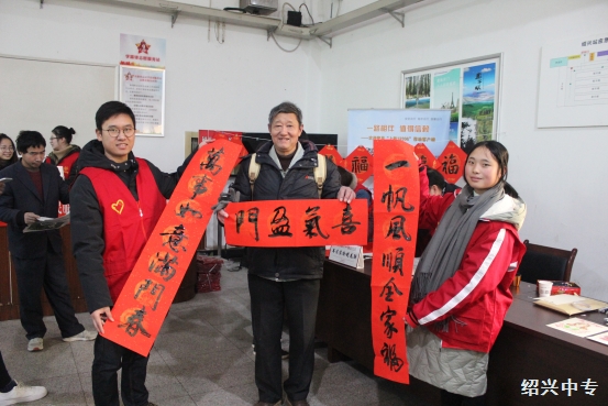 旅客朋友:请带上一份绍兴中专师生写的春联和“福”字,带着书法之乡人朴素的祝福回家吧!